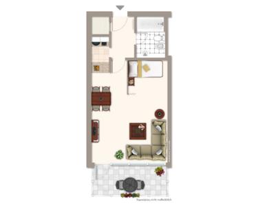 Diese geschmackvoll möblierte 1-Zimmer-Wohnung bietet auf ca. 44 m² eine perfekte Aufteilung und eine gemütliche Atmosphäre. Der Wohnbereich ist hell und freundlich gestaltet, und bietet ausreichend Platz. Die moderne Küche ist funktional ausgestattet und bereit für den täglichen Gebrauch. Das Badezimmer ist älter, jedoch gepflegt und voll funktionsfähig. Ein besonderes Highlight ist der große Balkon in Südausrichtung, der viel Sonne und einen schönen Ausblick bietet.