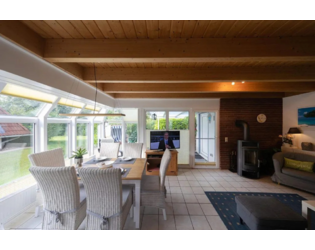 ID012025 Das gemütlich und modern eingerichtete Ferienhaus im Land Wursten zwischen Bremerhaven und Cuxhaven ist mit allem Komfort ausgestattet und wird mit kompletten Inventar verkauft. Das Ferienhaus besteht aus einem großzügigen Wohn-/Essbereich mit Kamin mit EBK, vom hell eingerichteten Wohnbereich geht man in den lichtdurchflutenen Wintergarten. Das Duschbad mit WC befindet sich im EG. Im OG befinden sich zwei Schlafzimmer mit Außenrolläden. Terrasse mit Gartenmöbeln.