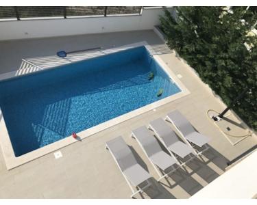 Um das luxuriöse mediterrane Wohnerlebnis perfekt zu machen, verfügt der Garten über einen privaten Swimmingpool, der von mediterranen Pflanzen und Grün umgeben ist und so den perfekten Ort zum Entspannen und Genießen warmer dalmatinischer Abende darstellt. Vom großzügigen Balkon und der Terrasse genießen Sie stets einen bezaubernden Blick auf das Meer.