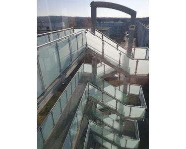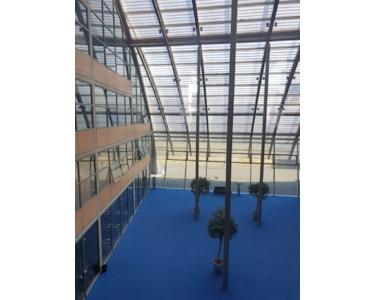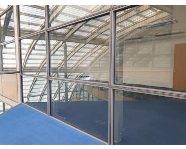 Das Gebäude verfügt über ein Zutrittskontrollsystem und im großzügigen Atriums-Eingangsbereich gibt es einen Empfang mit Postdienst.