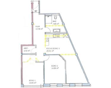 Die Raumaufteilung der Büroeinheit wird nach Wunsch des Mieters vorgenommen. Der Grundriss ist noch variabel. Nach Umbau wird das Büro neu renoviert dem Mieter übergeben.