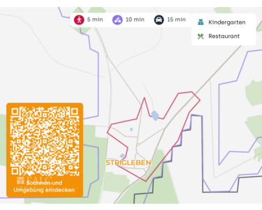 Die Umgebung des Ortsteils Strigleben zeichnet sich durch weite Wiesen, Felder und eine naturnahe Lage mit Blick auf das angrenzende Moor aus.