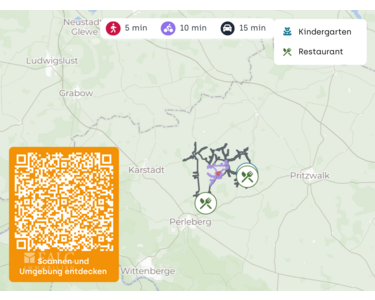Als künftige Eigentümer genießen Sie einen schönen Fernblick auf das angrenzende Moor und profitieren von einer idyllischen, ruhigen Umgebung. Gleichzeitig bietet die nur 11 km entfernte Rolandstadt Perleberg eine umfassende Infrastruktur, so dass Sie alle Annehmlichkeiten einer Kleinstadt in kurzer Distanz erreichen.