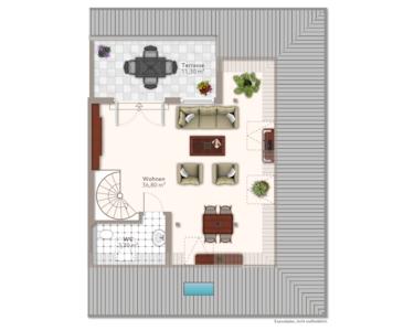 Die hell geschnittene Maisonettewohnung, besticht sofort mit Gemütlichkeit und Stil, welcher sich auf beiden Ebenen widerspiegelt. Das Highlight befindet sich auf der oberen Etage, hier haben Sie eine wunderschöne Dachterrasse, welche Ihnen sonnige Stunden zum verweilen garantiert, ebenfalls das großzügig geschnittene Wohnzimmer samt Gäste WC.