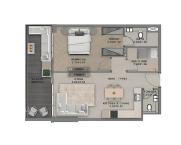 Das 1-Schlafzimmer-Apartment in REEF 999 bietet modernes, luxuriöses Wohnen in einer der begehrtesten Gegenden Dubais. Mit einem durchdachten Design und innovativen Features wie einem klimatisierten, versenkten Balkon setzt dieses Apartment neue Maßstäbe für urbanen Komfort.