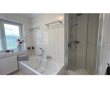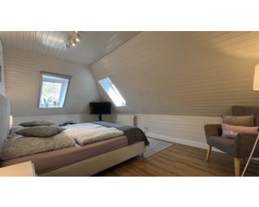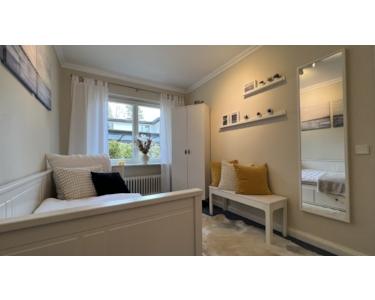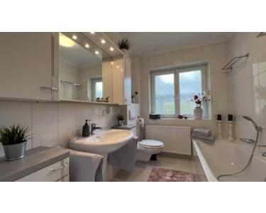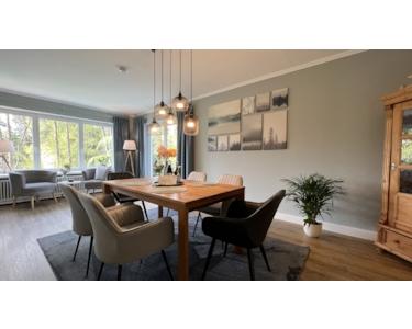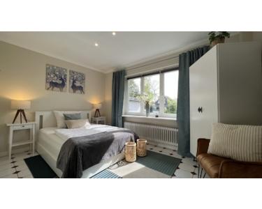 Willkommen in Bendestorf. Schon vor dem Grundstück bemerkt man die hochwertige Nachbarschaft und spürt das gewisse Lebensgefühl eines Luftkurortes. Beim Betreten des Grundstücks fällt als erstes die hochwertige Pflasterung der Zufahrt und des Weges auf sowie der schöne Blick in den leicht abfallenden Garten mit altem, gepflegtem Baumbestand. Das Zufahrtstor öffnet sich elektrisch und der Weg zum Haus ist durchgehend beleuchtet. Vor dem Haus angekommen, sieht man direkt vor sich den modernen Carport. Links befindet sich der Eingang zum Haus, der über wenige Stufen zu erreichen ist und klassisch in dunklem Anthrazittönen gehalten ist. Direkt im Eingangsbereich befindet sich links eine in weiße Holztreppe zur Einliegerwohnung im Obergeschoss, rechts ein Gäste-WC mit Dusche und direkt vor Ihnen die Eingangstür zur Erdgeschosswohnung. Hier beginnen wir auch unseren Rundgang. Gleich beim Betreten fallen die großen Landhaustüren auf, die in den Wohn-/Essbereich führen. Hier im Flur erinnert das schöne Fliesenmuster des Bodens an das ursprüngliche Gebäude aus den 70er Jahren. Doch damit genug der Nostalgie, denn das Haus wurde in den letzten Jahren aufwendig modernisiert. Im Erdgeschoss verbindet der Flur alle Bereiche. Links geht es ins Kinder-/Gästezimmer und in die Küche. Diese ist mit hochwertigen Markenelektrogeräten ausgestattet und wirkt durch den hellen Designvinylboden und den weißen Fronten hell und freundlich. Das Highlight hier im Erdgeschoss ist aber sicherlich der großzügige Wohn-/Essbereich. Von hier aus gelangt man direkt auf die nach Süden ausgerichtete Sonnenterrasse oder in den etwas tiefer gelegenen, sehr gemütlichen Kaminbereich. Der gesamte Bereich ist durch die vielen Fenster lichtdurchflutet und jedes Familienmitglied, aber auch Besucher finden hier ihren Lieblingsplatz. Doch bevor wir uns dem Außenbereich zuwenden, setzen wir unseren Rundgang fort. Hier im Erdgeschoss befinden sich zwei weitere Schlafzimmer sowie das ebenfalls hell geflieste Vollbad mit separater Dusche. Über eine Treppe gelangt man von hier aus auch in den Keller. Neben Stauraum überrascht dieser Bereich mit einem großen Wohnraum, der wohnlich genutzt werden kann. Heizung und Tageslichtfenster mit schönem Blick in den Garten sind vorhanden. Im Obergeschoss des Hauses befinden sich neben zwei weiteren Schlafzimmern auch eine modern ausgestattete Küche sowie als Pendant zum Kaminzimmer im Erdgeschoss ein Duschbad mit Sauna für mehrere Personen. Da das Dach gedämmt wurde, ist das Raumklima zu jeder Jahreszeit angenehm. Das Anwesen kann auch als Zweifamilienhaus genutzt werden, die Zähler müssten dann entsprechend nachgerüstet werden. Die Wohnung im Obergeschoss wird seit einiger Zeit als Ferienwohnung vermietet. Hier wurden in den letzten beiden Jahren durchschnittlich knapp 19.000 € Mieteinnahmen erzielt, eine genaue Übersicht kann bei Bedarf vorgelegt werden. In den letzten Jahren wurden, wie bereits erwähnt, umfangreiche Modernisierungen durchgeführt. So wurde 2017 eine neue Gaszentralheizung eingebaut, 2020 die Dachfenster im Obergeschoss erneuert, Fußböden, Küchen, Elektrik etc. modernisiert. Eine genaue Auflistung entnehmen Sie gerne unserer dem Exposé beigefügten Aufstellung.