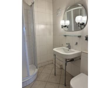Rechts von der Diele aus befindet sich das bereits einmal renovierte Badezimmer mit Dusche und WC.
