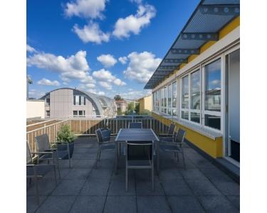 Die großzügige Dachterrasse sorgt für entspannte Pausen.