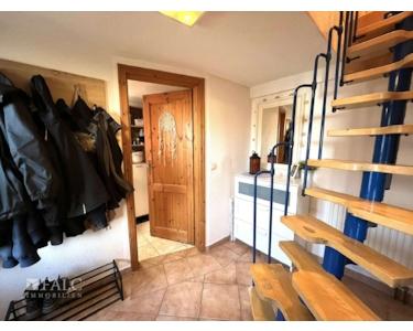 Beim Betreten des Hauses werden Sie von einem einladenden Foyer empfangen, das mit warmen Holzelementen ausgestattet ist und einen ersten Eindruck von der behaglichen Atmosphäre vermittelt. Die Treppe führt Sie in die oberen Bereiche des Hauses.