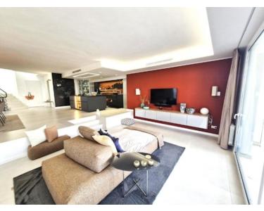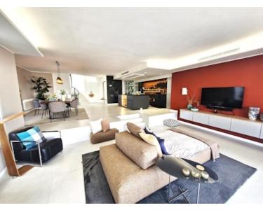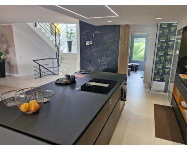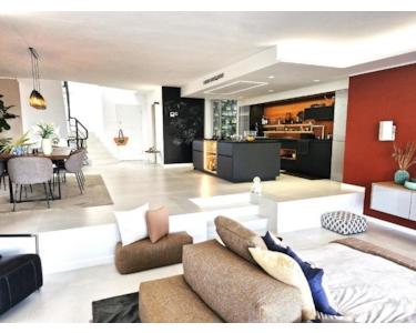Offener Eingangsbereich mit großem modernen Wohn- Essraum und offener Küche zur angrenzenden Terrasse zum Süden.