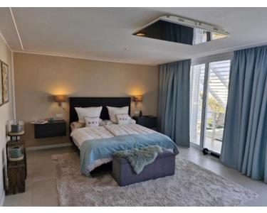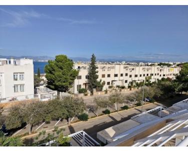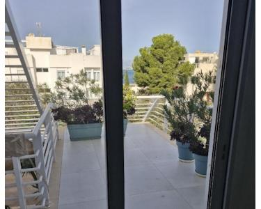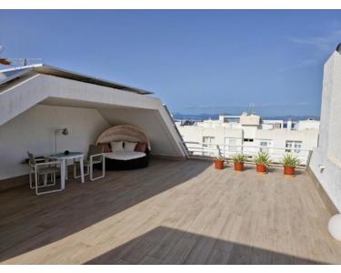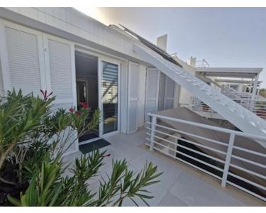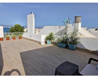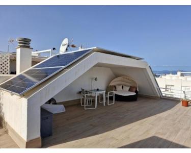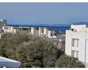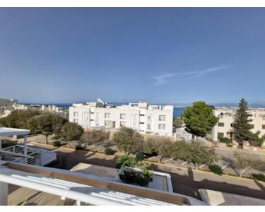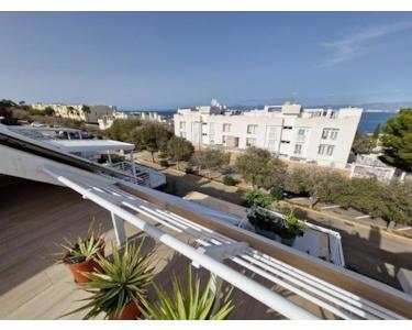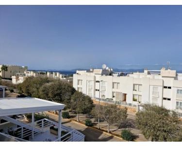 Von der großen Dachterrasse (teils überdacht) auf der 2. Etage sieht man das Meer.