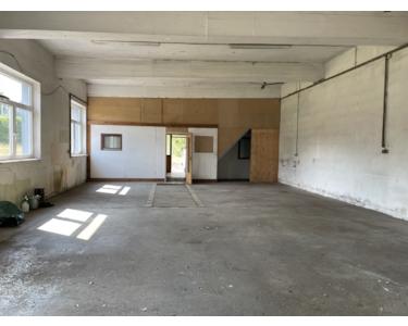 Blick von der Halle zum Verkaufsraum und Sanitäreinrichtung