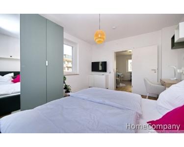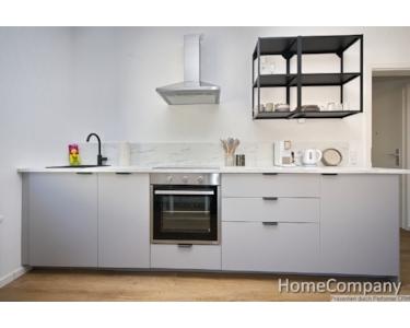 Erstbezug! Das Apartment ist perfekt ausgestattet und bietet Ihnen viel Komfort. Die Wohnküche ist mit einer hochwertigen Einbauküche inklusive Backofen, Cerankochzone, Spülmaschine, Kühlschrank, Wasserkocher und einer Nespresso Kaffeemaschine ausgestattet. Eine Grundausstattung an Geschirr und Kochutensilien ist selbstverständlich auch vorhanden. Ein gemütliches Sofa und ein Esstisch für zwei Personen komplettiert die Wohnküche. Der angrenzende Schlafraum ist mit einem Doppelbett (160 x 200 cm), einem Kleiderschrank und einem Schreibtisch für Ihr Home-Office möbliert. Das Smart-TV ist schwenkbar und natürlich mit dem Internet verbunden. Das Tageslichtbad ist mit einer Wanne inklusive Duschvorrichtung mit Glasabtrennung ausgestattet. Im Keller steht Ihnen eine Waschmaschine zur Mitbenutzung zur Verfügung.