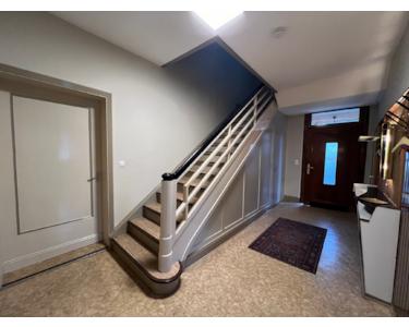 Die repräsentativ breite Holztreppe führt ins Obergeschoss mit insgesamt vier Schlafzimmern, teilweise mit Waschbecken, Nischen und Wand- oder Einbauschränken, einem Badezimmer mit Dusche & Badewanne (in 2014 erneuert) als auch der Aufgang zum Dachboden. Dieser ist nicht ausgebaut, beherbergt aber eine süße mit Dachbodenkammer einer ca. 200 m² großen Grundfläche.