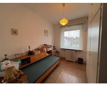 Im Erdgeschoss des 1965 sanierten Altbaus befinden sich drei durch große Fenster lichtdurchflutete Räume: Ess-, Herren- sowie Wohnzimmer mit Erker. Die Räume sind durch innenliegende mit Glaseinsätzen versehene Holzschiebetüren trennbar. Großzügig hohe Decken verleihen ein Wohlfühlambiente. Vom ehemaligen Herrenzimmer gelangen Sie direkt in den gepflegten Garten