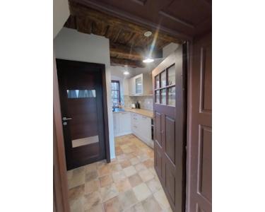 Az Őrségre jellemző kódisállás elemeit idéző bejáraton keresztül jutunk az épületbe. Az előszobából két külön bejáratú szoba nyílik, amelyek jelenleg hálószobaként és nappaliként funkcionálnak. A folyosóról továbbá elérhető a konyha, a fürdőszoba, a WC és a padlásfeljáró.