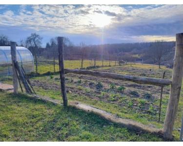 Zum Bild des traditionellen Őrség-Bauernhauses gehört auch der Obstgarten hinter dem Haus, der mit fruchttragenden Pflaumen- und Apfelbäumen bepflanzt ist. Wenn Sie von hier aus weitergehen, kommen Sie zu einer riesigen Akazie, die von einem Wildnetz umgeben ist, ca. Wir gelangen zu einem 400 m² großen, sorgfältig gepflegten Nutzgarten. Das Gebiet geht in einen sanft abfallenden Hang über, der sich bis zum Bach im Tal erstreckt.