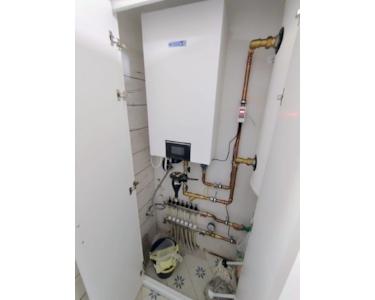 Für Warmwasser sorgt ein neuer, intelligenter Boiler. Die Küchenmöbel mit integrierter Beleuchtung in der Küche sind Bestandteil des Kaufpreises.