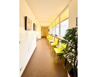Diese moderne, barrierefreie Praxis überzeugt mit lichtdurchfluteten Räumen und hochwertiger Ausstattung.
