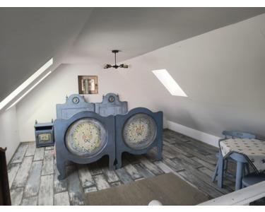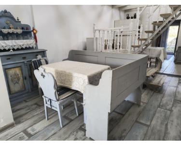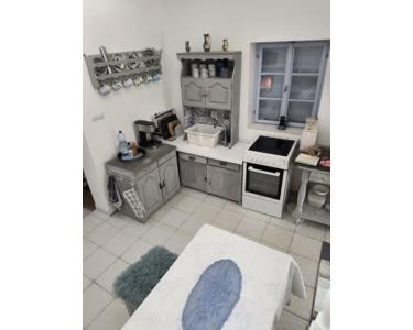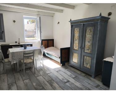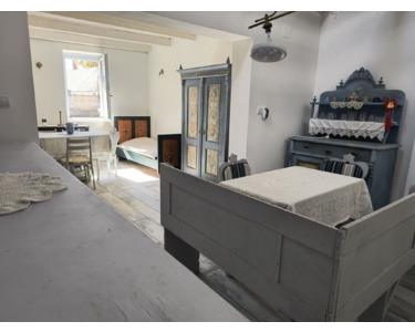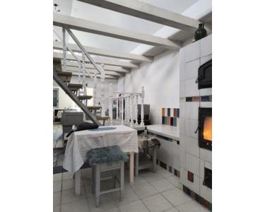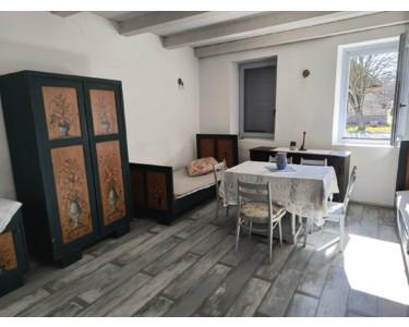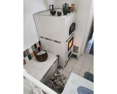 Das ursprünglich um 1863 erbaute traditionelle Bauernhaus besteht aus Lehm und Stein und verfügt über eine Nutzfläche von ca. 130 qm, 2020 komplett renoviert. Das Gebäude wird durch ein Mikropfahlfundament stabilisiert und ein Entwässerungssystem leitet das Regenwasser rundherum ab. Die Innenwände, das Dach, die Decke, der Schornstein sowie die Strom- (Drehstrom) und Wasserversorgung sind komplett neu. Auf Wunsch kann eine Klimaanlage zum Kühlen und Heizen eingebaut werden, durch die 50 Zentimeter starken Wände bleibt das Haus aber auch im Sommer kühl. Die Türen und Fenster sind aus Holz, da dies eine kontinuierliche Belüftung gewährleistet, mit Rollläden an den Straßenfenstern. Im Untergeschoss befanden sich das Wohnzimmer (anstelle des ehemaligen Reinraums), das Esszimmer, die Küche, die Wirtschaftsräume (Abstellraum, Speisekammer), das Badezimmer und eine separate Toilette. 9 neue Dachfenster im Dachgeschoss sorgen für natürliches Licht, das Dachgeschoss ist isoliert. Das Erdgeschoss befindet sich im selben Raum wie das Dachgeschoss, auf Wunsch können separate Räume geschaffen werden, derzeit ist das Gebäude jedoch einräumig. Badezimmer mit Badewanne im Erdgeschoss, Toilette mit Waschbecken im Dachgeschoss. Im Erdgeschoss befindet sich neben dem Hinterausgang ein separates WC, welches bequem vom Garten aus erreichbar ist. Die Waschmaschine befindet sich gegenüber der Toilette in einem begehbaren Kleiderschrank. Die Beheizung erfolgt über einen keramikbeschichteten Masseofen, der einmal täglich angeheizt wird und die Temperatur auch über mehrere Tage hinweg konstant hält, so dass das Haus sowohl im Winter als auch im Sommer bewohnbar ist. Der Brennstoffbedarf wird größtenteils durch die Pflege des zum Haus gehörenden Waldes gedeckt. Das Grundstück ist an die Kanalisation angeschlossen. Der Haupteingang des Hauses ist eine Sicherheitsstahltür. An der Rückwand befindet sich eine doppelte Glas-/Lamellentür, die zum ummauerten Kiesplatz auf der Rückseite führt. Auf der Vorderseite des Hauses befindet sich eine überdachte Terrasse, auf der ein Tisch und Gartenmöbel aufgestellt werden können. Die Doppeltür verfügt über ein motorisiertes Sicherheitsgitter, dieses musste aber bisher noch nicht eingebaut werden, das Dorf ist absolut sicher, die Nachbarn sind hilfsbereit. Die Gartenpflege erfordert keinen großen Zeitaufwand, er ist mit Stauden bepflanzt, auf dem Kiesplatz wachsen statt auf dem Rasen Walderdbeeren, Mähen und Gießen ist nicht nötig. Das Haus wird möbliert verkauft.