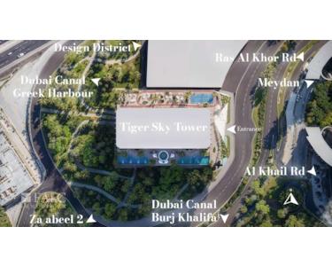 Der Tiger Sky Tower befindet sich im Herzen von Business Bay, einem der prestigeträchtigsten Geschäftsviertel Dubais. Diese zentrale Lage gewährleistet eine außergewöhnliche Anbindung an die bedeutendsten Geschäftszentren, Shopping-Destinationen und kulturellen Wahrzeichen der Stadt.