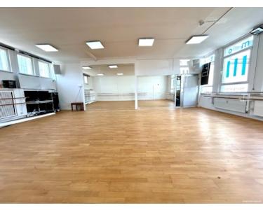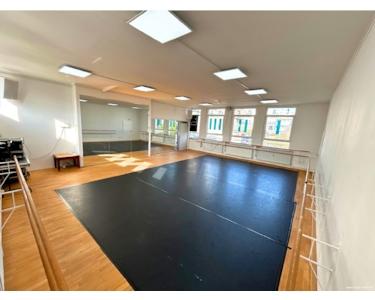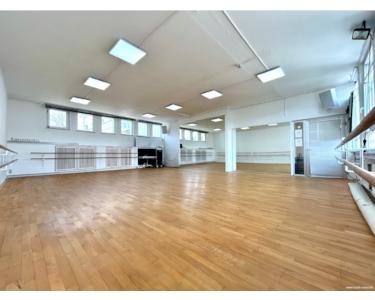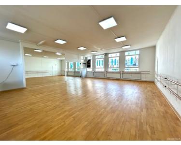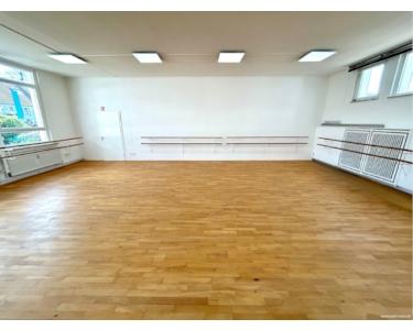 Die ca. 105 m² große Gewerbefläche kann als Tanz- oder Yogaschule, für Bewegungs-, Körpertrainings- und Fitnesskurse genutzt werden.