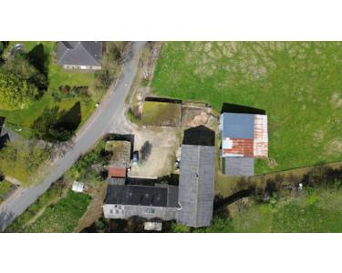 - Hoffläche mit sanierungsbedürftigem Wohnteil und angrenzenden Scheunen-/Stalltrakten