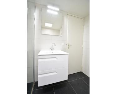 Das kürzlich renovierte Badezimmer strahlt Luxus und Komfort aus. Die geräumige begehbare Dusche bietet einen schönen Platz, um sich nach einem aktiven Tag in der Natur frisch zu machen. Das Waschbecken ist mit einem praktischen Schrank und einem Spiegel ausgestattet und bietet Ihnen viel Stauraum. Die hängende Toilette sorgt für einen sauberen und modernen Look, während der Designheizkörper den Raum angenehm wärmt. Ein stilvolles und funktionelles Bad, das Sie in vollen Zügen genießen können!