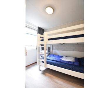 Dieses gemütliche Schlafzimmer ist mit einem praktischen Etagenbett ausgestattet, ideal für Kinder oder zusätzliche Gäste. Das Fenster sorgt für natürliches Licht und Belüftung, wodurch der Raum frisch und angenehm wirkt. Darüber hinaus bietet ein praktischer Kleiderschrank Stauraum für Kleidung und Habseligkeiten, so dass Sie während Ihres Aufenthalts immer Ordnung halten können. Ein schöner Ort zum Entspannen nach einem Tag voller Abenteuer in der Natur!