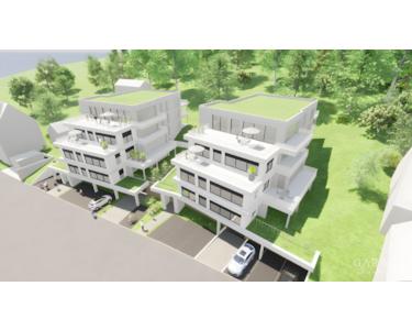 Ein geologisches Gutachten bestätigt, dass trotz der Hanglage eine Bebauung ohne Verbau möglich ist. Die geplante Bebauung sieht ein modernes, barrierearmes Mehrfamilienhaus mit Flachdach vor, welches elf hochwertige Wohneinheiten sowie eine Tiefgarage umfasst.