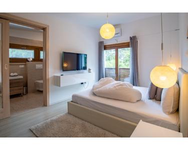 Alle Türen und Fenster im Haus sind mit Aluminium-Rollläden ausgestattet, die mit elektrischer Fernbedienung bedient werden und mit Moskitonetzen ausgestattet sind. Ein automatisches Bewässerungssystem sorgt im Garten für gepflegte Pflanzen, während ein elektrisch betriebenes Garagentor und ein motorisiertes Schwimmtor das Einparken der Autos erleichtern. Für Sicherheit sorgt eine moderne Alarmanlage. Abgerundet wird der Wellnessbereich des Hauses durch eine finnische Fülek-Sauna, die von einem 7-kW-Harvia-Ofen angetrieben wird.