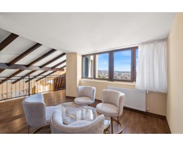 -Közvetlen kijárat a 112 m²-es részben fedett, részben pedig nyitott teraszra, amely tökéletes helyszín a pihenéshez és a panoráma élvezetéhez.