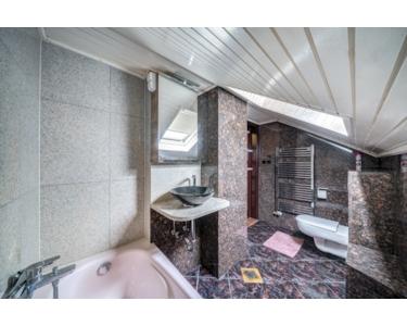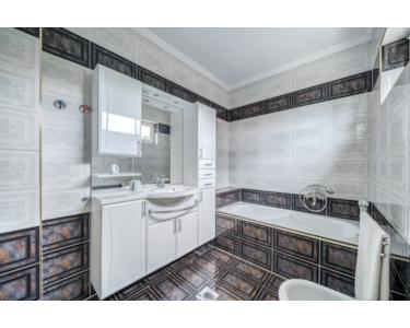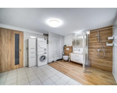 A ház három fürdőszobával rendelkezik, melyek mindegyike magas minőségű burkolattal van ellátva. A fűtésről kondenzációs gázkazán gondoskodik, a nyári hőséget pedig hűtő-fűtő klíma enyhíti, így az év minden szakában kellemes hőmérsékletet biztosít. Az ingatlan padlófűtéssel és radiátoros fűtéssel egyaránt rendelkezik, amely további kényelmet és hatékonyságot nyújt a hidegebb hónapokban