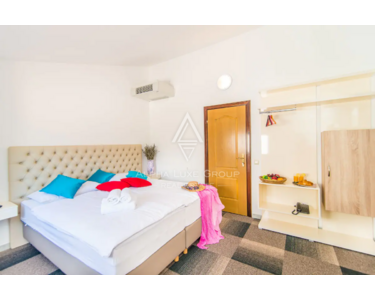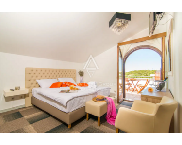 Das Anwesen erstreckt sich über 1.250 m² Netto-Wohnfläche auf einem 617 m² großen Grundstück, ergänzt durch zusätzliche 2.000 m² Nutzfläche. Das Hotel erstreckt sich über ein Erdgeschoss, zwei Obergeschosse und ein Dachgeschoss und verfügt über 16 elegant eingerichtete Doppelzimmer, jedes mit eigenem Balkon. Die Zimmer im obersten Stockwerk sowie die luxuriöse 225 m² große Wohnung bieten einen atemberaubenden Meerblick, während die Zimmer im ersten Stock eine charmante Aussicht auf die Altstadt von Vrsar bieten.
