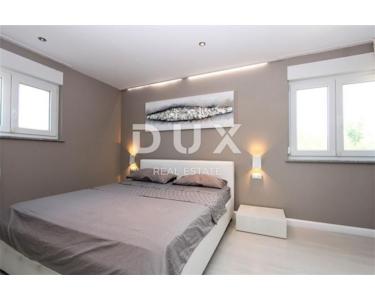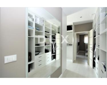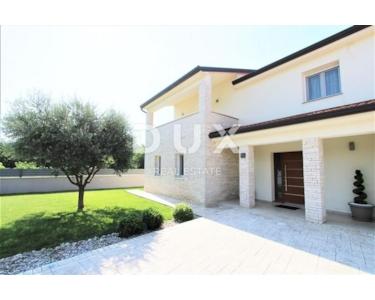 ISTRIEN, POREČ – Eine moderne Villa in der Nähe des Meeres und der Stadt Poreč liegt an der Westküste der Halbinsel Istrien. Aufgrund des mediterranen Klimas, der natürlichen Schönheit und des erhaltenen kulturellen Erbes ist es das ganze Jahr über ein idealer Aufenthaltsort. Die Stadt umfasst 53 umliegende Siedlungen, in denen es moderne Villen mit Schwimmbädern und Apartmentkomplexe gibt, während im Zentrum eine Vielzahl von Apartments und Wohnungen zum Verkauf stehen, von rustikalen Steinhäusern bis hin zu luxuriösen Neubauten. Diese exklusive Villa mit einer Wohnfläche von 288,07 m2 liegt in unmittelbarer Nähe der Stadt Poreč und nur 2 km vom Meer entfernt. Das Haus verfügt über einen wunderschön angelegten Garten mit Swimmingpool, der direkt vom Wohnzimmer aus zugänglich ist und zusammen mit der Küche und dem Esszimmer ein schönes, offenes Ganzes bildet. Vom Wohnzimmer aus hat man außerdem Zugang zu einer überdachten Terrasse mit angeschlossener Sommerküche, die offen oder geschlossen sein kann, was durch eine Glaswand entlang der Terrassenlänge ermöglicht wird. Im Erdgeschoss gibt es auch ein Zimmer mit eigenem Bad. Vom Wohnzimmer führt eine beleuchtete Treppe in die erste Etage, wo sich zwei geräumige Schlafzimmer mit eigenem Bad und dazwischen ein geräumiges Ankleidezimmer befinden. Außerdem gibt es im ersten Stock zwei Terrassen mit schöner Aussicht. Diese moderne Villa zeichnet sich durch Design und Bauqualität aus und ist mit den modernsten Geräten und Möbeln ausgestattet. Merkmale der Villa: - Wärmeisolierte Fassade - Fußbodenheizung, Klimaanlage - Zimmerei mit dreifach verglasten Fenstern - Wasseraufbereiter - Swimmingpool - Einbauküche - Videoüberwachung und Alarmanlage - geräumige Garage 47 m2 mit ferngesteuertem Garagentor