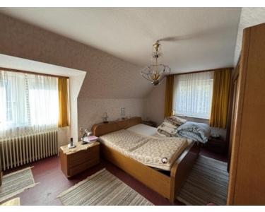 Das Haus verfügt über insgesamt sechs Zimmer, darunter vier Schlafzimmer und zwei Badezimmer. Die Räumlichkeiten sind großzügig gestaltet und bieten viel Raum für Entfaltung und Kreativität. Der Keller bietet zusätzlichen Stauraum. Die Öl-Heizung ist bereits älter. Der Käufer sollte eine Erneuerung der Heizung in seinem Sanierungsplan mit einkalkulieren. Das Grundstück bietet neben einer großen Hoffläche im hinteren Bereich des Gartens weiteres Potential, um seine Gartenträume zu verwirklichen.