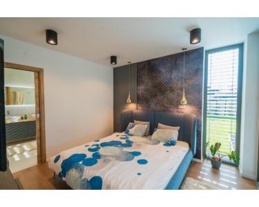 - Exkluzív belső beépített bútorzat - gardróbbal, egyedi lámpákkal, beépített mennyezeti színváltós "hangulat" világítással