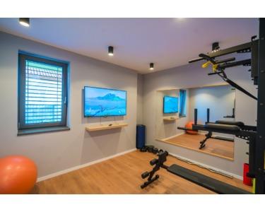 Aufteilung: 3 Schlafzimmer, geräumig, Galerie-Wohnzimmer und Küche-Esszimmer, 1 Fitnessraum, 2 Bäder, separates WC, 3 Garderobenräume, 1 Sauna, 1 Terrasse, 1 Garage für zwei Autos, separater Technikraum, mit Waschküche.