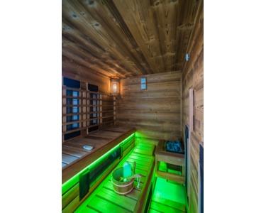 Es gibt eine Premium-Kategorie 4-5 Personen Kombi-Sauna im Obergeschoss und einen 5 Personen Außenwhirlpool im Hof (Tropic Seas Spa Rio 751L von Artesian Massagepool)