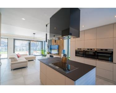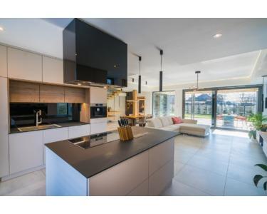- A nappalihoz kapcsolódó, konyha-étkező helyiség magas minőségű beépített konyhabútorzattal (EGGER), minőségi Bosch gépekkel (Serie 8 beépített gőz-párolósütő, mikró, két hűtő, sütő, kávé gép, mosogató gép), kiépített konyhaszigettel felszerelt amelyen indukciós főzőlap kapott helyet (Serie 8)