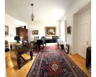 Die 60 m² große Hinterwohnung verfügt zusätzlich über ein Bad, zwei Zimmer und eine kleine Küche, sodass sie auch als Gästewohnung genutzt werden könnte.
