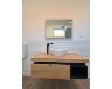 A fürdőszobák letisztult modernitást és eleganciát képviselnek: egy tágas, világos, fürdőszoba kínál kényelmet, míg az egyik hálószoba saját, privát zuhanyzóval rendelkezik. A vendégek kényelmét az előszoba mellett elhelyezkedő open-concept zuhanyzóval ellátott WC szolgálja.