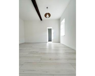 Das Haus verfügt über drei geräumige Zimmer, eines davon mit praktischer Garderobe. Die beeindruckende Deckenhöhe von 3,3 Metern sorgt nicht nur für Großzügigkeit in den Räumen, sondern auch für viel natürliches Licht, sodass in allen Bereichen des Hauses eine angenehme, helle Atmosphäre herrscht.
