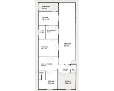 A házban található három tágas szoba, melyek közül az egyikhez egy praktikus gardrób is kapcsolódik. Az impozáns 3,3 méteres belmagasság nemcsak a terek tágasságát, hanem a természetes fény beáramlását is biztosítja, így a ház minden pontján kellemes, világos atmoszféra uralkodik.