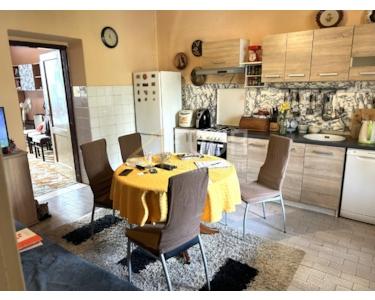 Sie besteht aus einer Küche, zwei Schlafzimmern, einem Badezimmer, einem WC, einem Flur und einem Holzschuppen.