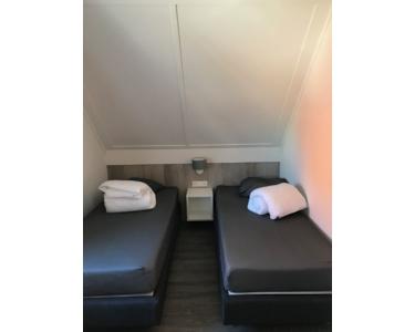 Dieses Schlafzimmer verfügt über 2 Einzelbetten, jedes mit einem eigenen Nachttisch. Es gibt auch einen Einbauschrank im Zimmer.