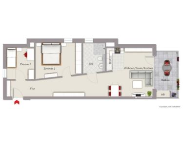 Die Angaben im Exposé beziehen sich auf die Informationen des Auftraggebers. Eine Gewähr für die vollständige Richtigkeit kann nicht übernommen werden. Die Abbildungen sind nicht maßstäblich und dienen der Illustration. Bei Flächenmaßen handelt es sich um Circa-Angaben vom Eigentümer oder Rohbaumaße. Das dargestellte Mobiliar ist nur ein beispielhafter Einrichtungsvorschlag.