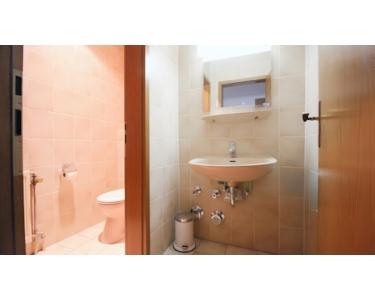 - Rosa Bodenfliesen und Fliesenspiegel im Sanitär
