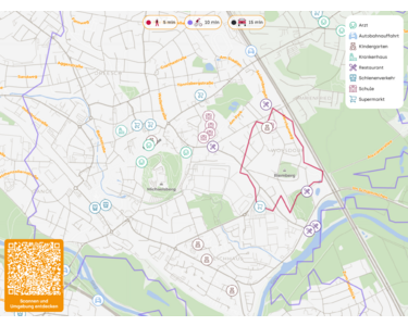 Für Familien und Berufstätige bietet die Lage zahlreiche Vorteile. Der nächste Supermarkt ist nur etwa 450 Meter entfernt, was den täglichen Einkauf besonders bequem macht. Auch die medizinische Versorgung ist durch die nahegelegene Kinderarztpraxis in etwa 820 Metern Entfernung gewährleistet. Für die Bildung der Jüngsten ist gesorgt, da die Grundschule Wolsdorf nur rund 300 Meter entfernt liegt. Zudem befindet sich ein Kindergarten in unmittelbarer Nähe, etwa 300 Meter von der Immobilie entfernt.