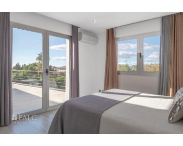Diese exklusive Villa vereint modernes Design mit höchstem Wohnkomfort. Bodentiefe Aluminium-Schiebefenster durchfluten die Räume mit Licht, während die großzügigen Terrassen perfekte Rückzugsorte bieten – eine mit direktem Zugang zum Infinity-Pool und Garten, die andere als private Oase am Schlafzimmer.